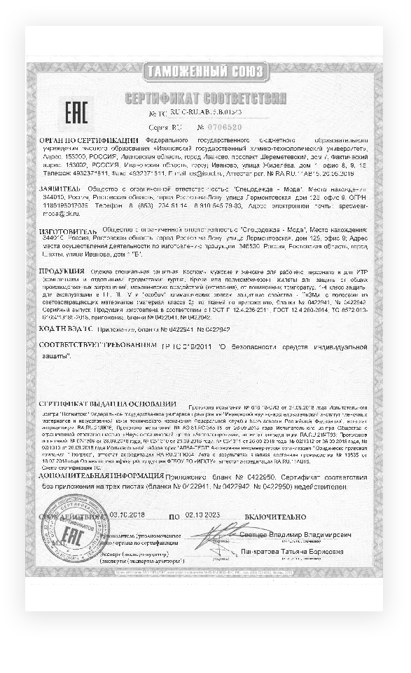 Летние и утепленные комплекты одежды для защиты от ОПЗ.