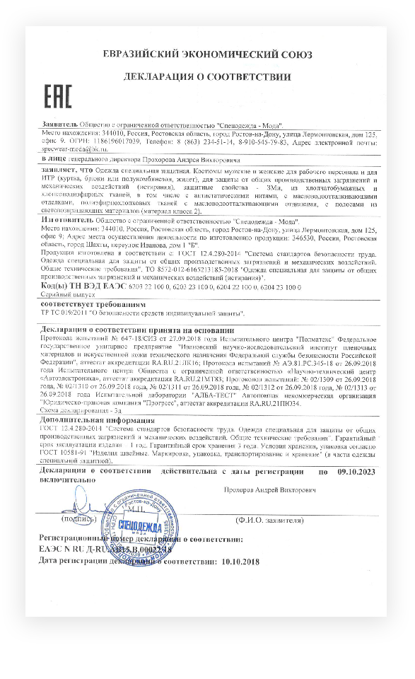 Поставляемая продукция имеет необходимые декларации и сертификаты о соответствии.